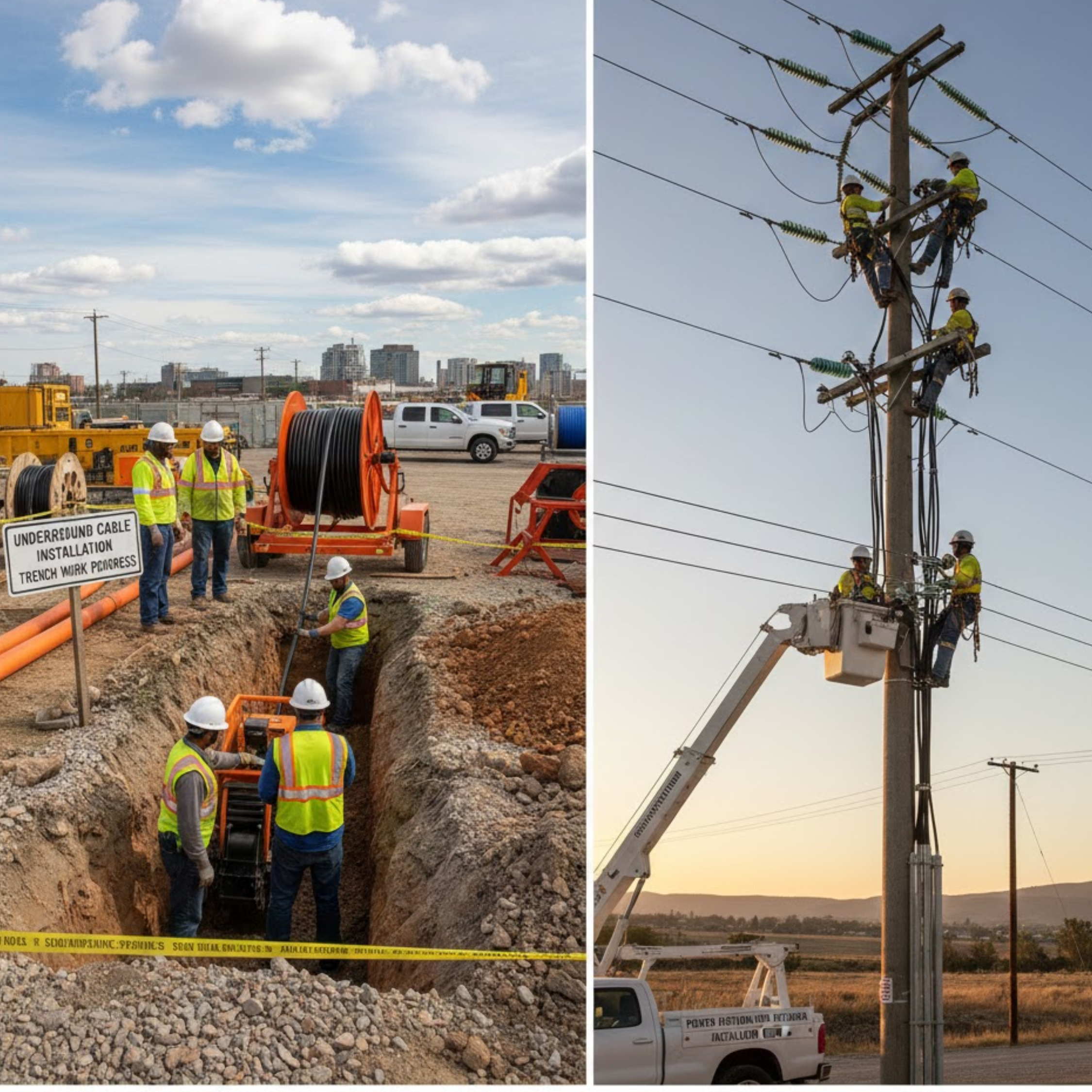 Building resilient power grids with substation construction and precision network cabling layouts.
